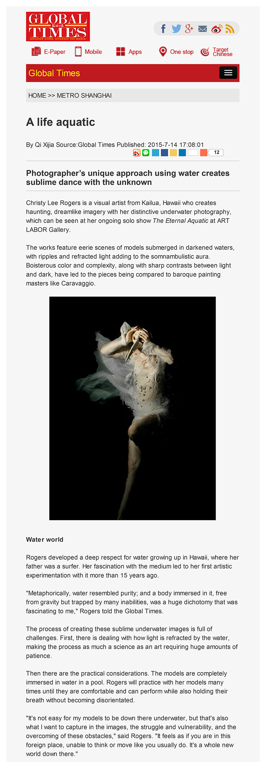 环球时报专稿:克里斯蒂 · 李 · 罗杰斯