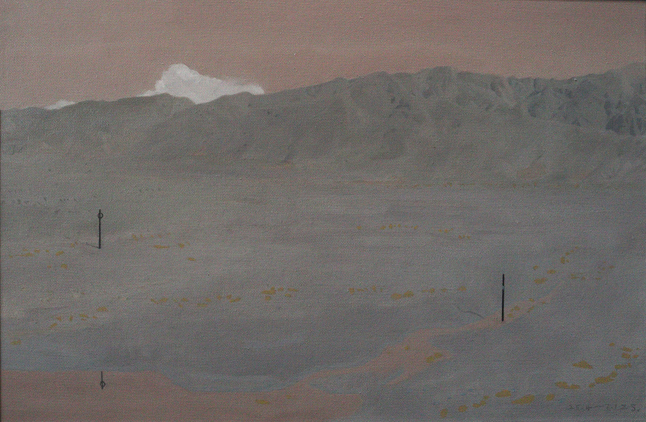 Zhang’s practice is deeply rooted in a tactile engagement with native landscapes, aiming to capture the most authentic material textures of land and nature. In works such as Memories of the Westward Journey, he undertakes spontaneous experiments with thin-layer oil painting, combining flat washes and glazes to minimize the intrusion of subjective brushwork.